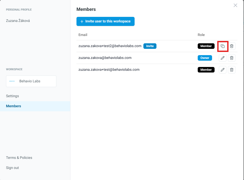 MY ACCOUNTand open theMemberstab. - You will see the list of users with access to the workspace.