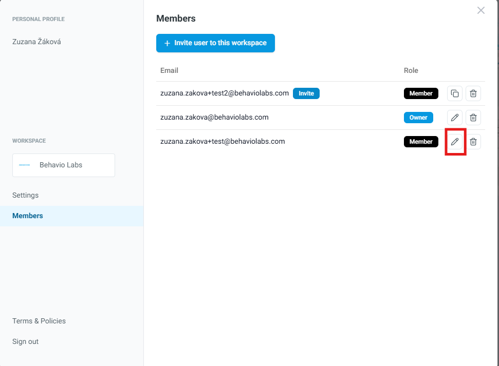 MY ACCOUNTand open theMemberstab. - You will see the list of users with access to the workspace.