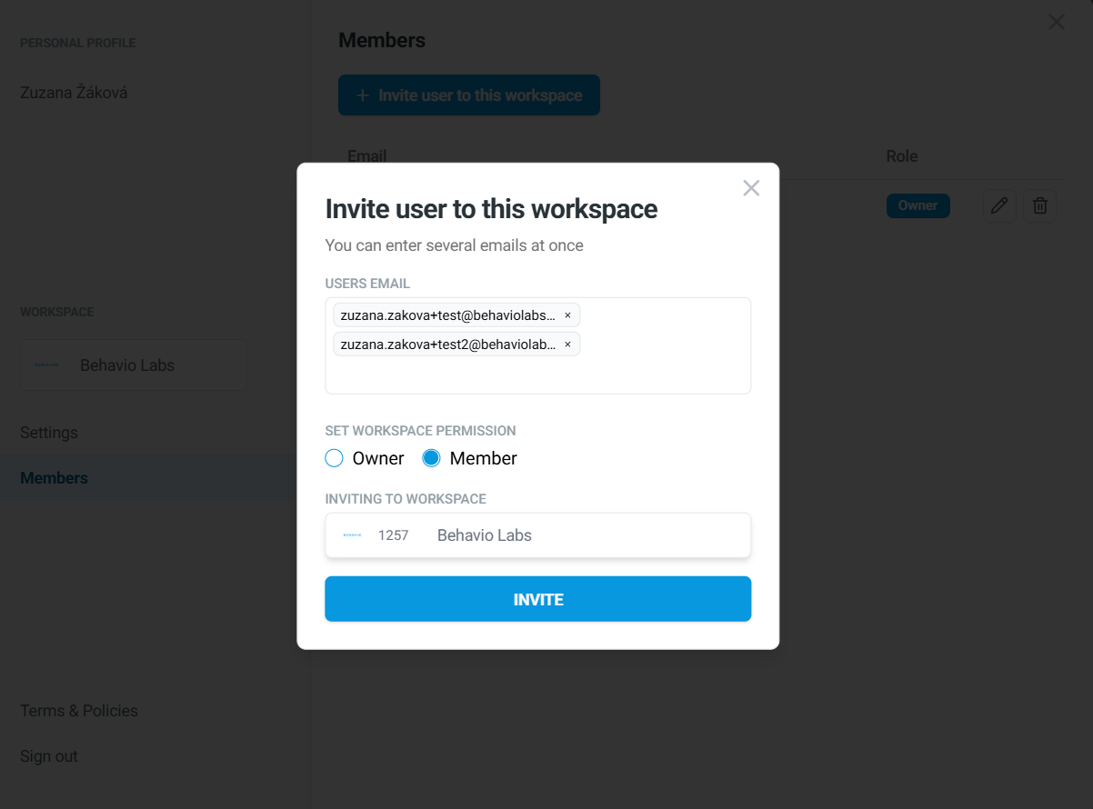 - If you have access to multiple workspaces, first switch to the workspace where you want to add the user.