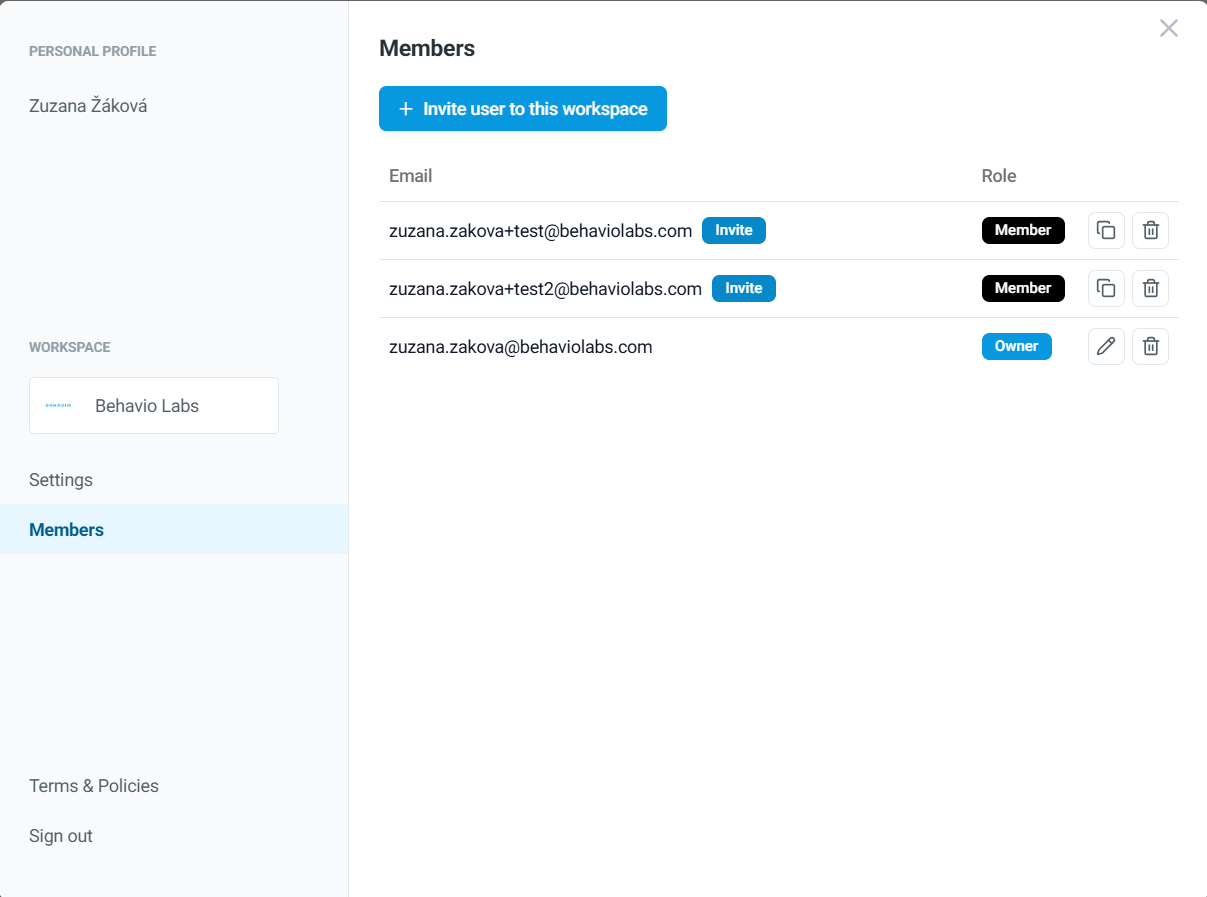 Memberstab. You will see a list of all accounts that already have access to your workspace.