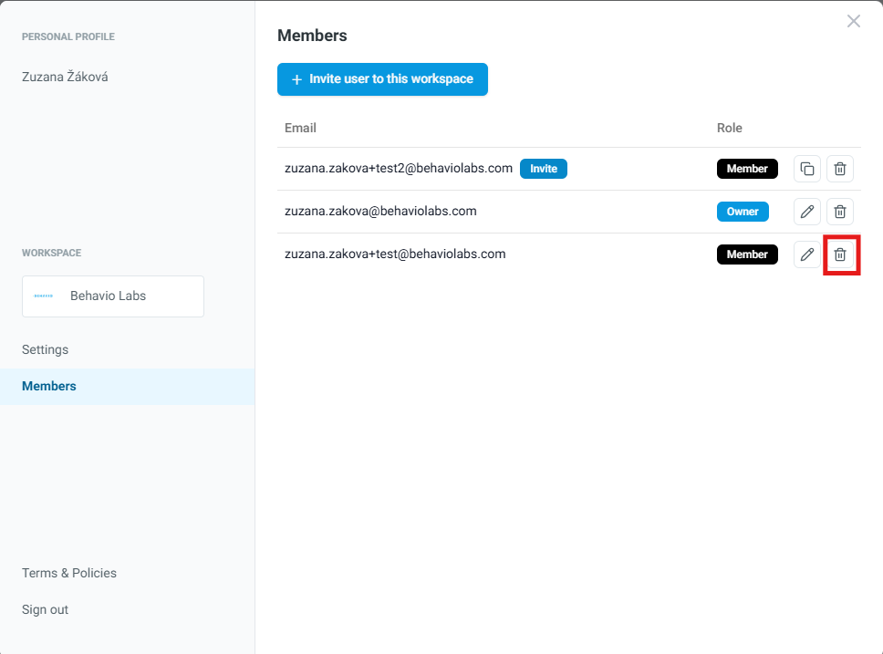 - Removing access takes the user out of your workspace, but it does not delete their Behavio platform account.